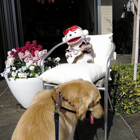 春の陽気に誘われたのか、羅務さんがお庭で弾き語りをしてました。